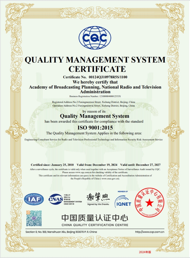 质量管理体系认证证书