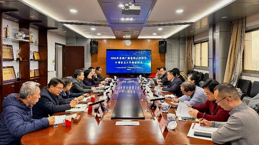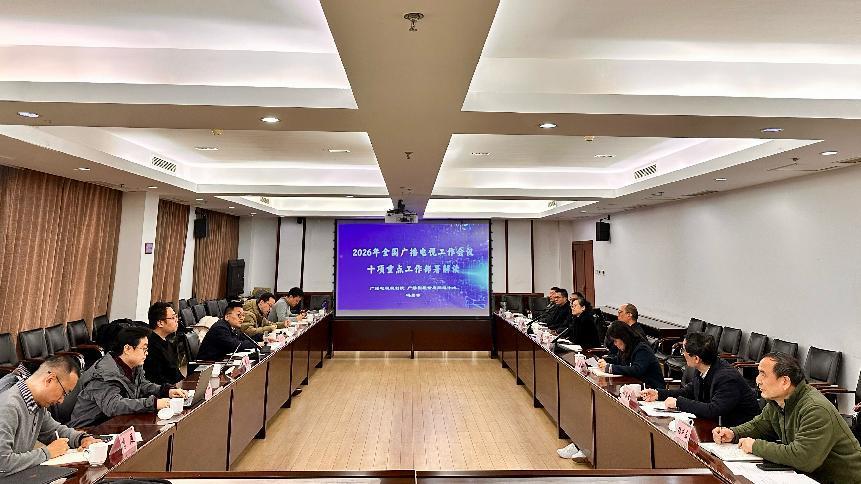 在江西省广播电视局,规划院与信息网络中心联合江西广电系统开展“学习贯彻党的二十届四中全会精神 推进2026十项重点工作部署”联学联建活动。活动由江西省广电局党组成员、副局长蔡旦颖主持,省广电局党组成员、副局长朱育松,省广电台总工程师周芸,中国广电江西网络公司总工程师胡蔚星,以及各相关部门负责人参加座谈。规划院综合办首先介绍了院中心党建工作开展情况及重点业务研究推进成效。冯景锋院长结合活动主题,深入解读了2026年全国广播电视工作会议十项重点工作部署。在交流研讨环节,双方围绕应急广播建设、“十五五”规划编制、超高清频道建设、中国视听大数据(CVB)应用、无线台站智慧运维、微短剧产业发展、网络安全、信创工作等关键议题展开热烈讨论,凝聚共识。随后,蔡旦颖副局长全面介绍了江西省广电系统整体发展情况及特色亮点工作。朱育松副局长代表江西省广电局作表态发言,对规划院和信息网络中心长期以来给予江西广电事业发展的关心支持表示衷心感谢。
