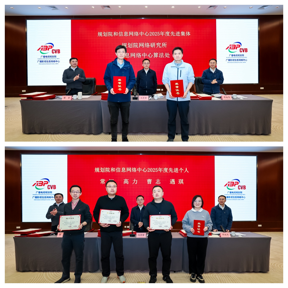 1月30日至31日,广播电视规划院和广播影视信息网络中心(以下简称“院、中心”)召开2026年工作会议。会议以习近平新时代中国特色社会主义思想为指导,全面贯彻落实党的二十大和二十届历次全会精神,深入学习贯彻习近平文化思想、习近平总书记关于广播电视和网络视听工作的重要指示批示精神和关于科技创新的重要论述,贯彻落实全国宣传部长会议和全国广播电视工作会议精神,总结2025年工作,深入分析行业发展新形势新任务,部署2026年重点工作。院、中心全体干部职工、部分离退休老同志参会。